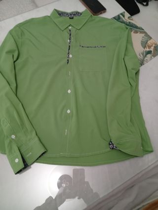 Camisa de estilo oversize con un diseño tricolor, es talla XS pera da para una M perfectamente, nueva. - Mangas largas. - Cuello camisero. - Bolsillo en el pecho. - Larga tapa el trasero
