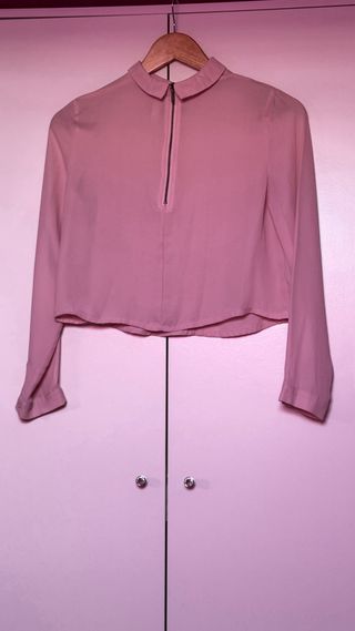 Camisa de vestir de manga larga. - Cuello camisero. - Corte cropped.