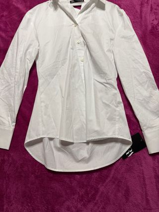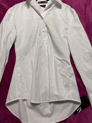 Camisa de popelín en color blanco. Un básico versátil para cualquier ocasión. - Cuello clásico. - Cierre de botones. - Manga larga. Tipo oversive. Con avertura laterales Medidas 60cm anchura y 70 largura Envío por inpost