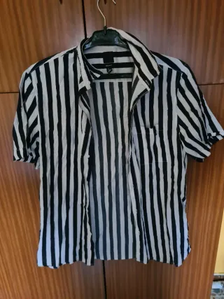 Camisa Rayas Blancas y Negras Manga Corta