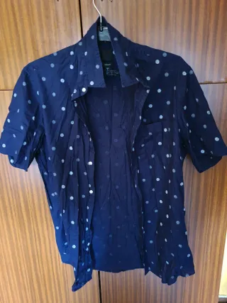 Camisa azul de manga corta con lunares