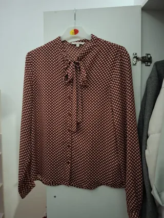 Camisa con un estampado llamativo y un diseño elegante. - Cuello con lazada. - Estampado de pequeños motivos florales. - Cierre de botones. precio muy negociable