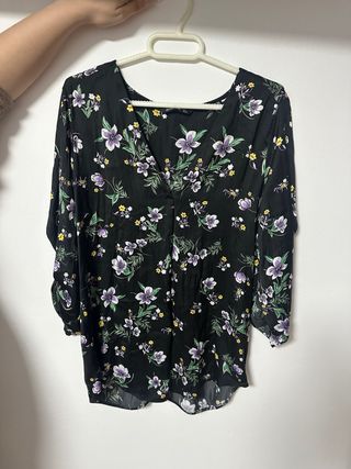 Camisa/Blusa estampada flores moradas y negras