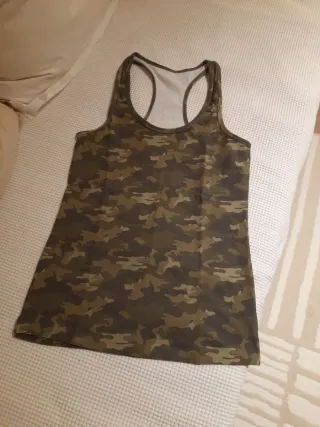 Camiseta de estilo safari para mujer. - Diseño de camuflaje. - Corte tipo racerback.