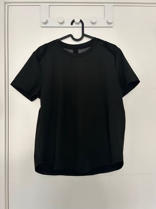 Corte muy ajustado, recomendada como M o L para gente delgada o que quiera marcar. Letras plateadas, usada 2 veces para eventos.