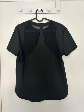 Camiseta de manga corta de la marca Oysho. - Diseño con detalles de malla en los hombros. - Cuello redondo.