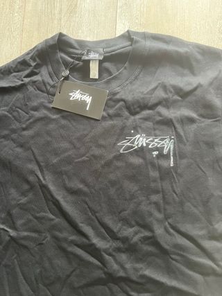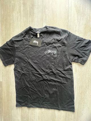 Camiseta Stussy de color negro. Presenta un diseño gráfico en la parte frontal. - Cuello redondo. - Manga corta. - Etiqueta de la marca.