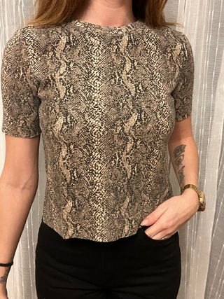 Camiseta de manga corta con un llamativo estampado. - Diseño de piel de serpiente. - Cuello redondo.