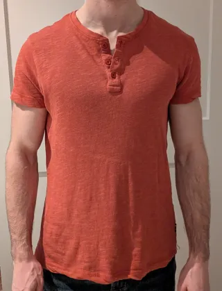 Camiseta de manga corta con un diseño casual y moderno. - Cuello Henley con dos botones. - Tejido ligero y cómodo.