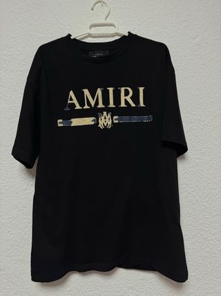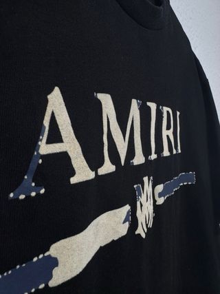 Camiseta de la marca Amiri en color blanco. Presenta un diseño llamativo con el nombre de la marca en grande. - Estampado frontal. - Cuello redondo. - Manga corta.