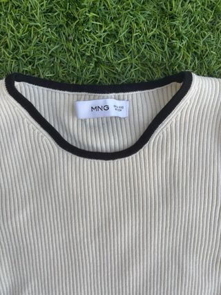 Camiseta de manga larga de Zara con un tejido acanalado y detalles brillantes. - Diseño acanalado. - Detalles brillantes.