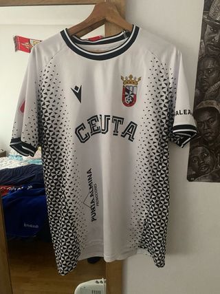 Camiseta oficial del Ceuta. - Diseño con detalles geométricos. - Cuello redondo y mangas cortas. - Escudo del club en el pecho.