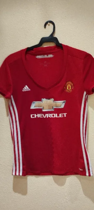 Camiseta de fútbol del Manchester United para chica. - Diseño con el escudo del club y logo de Adidas. - Detalles de rayas blancas en los laterales.