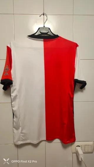 Camiseta oficial del Feyenoord Rotterdam. - Diseño dividido en rojo y blanco. - Logo de Adidas en el pecho. - Escudo del club en el pecho. - Patrocinador Opel en el frontal y manga.