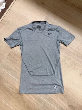 Camiseta deportiva Nike Pro Combat de color gris. Diseñada para el máximo rendimiento. - Tejido técnico transpirable. - Cuello redondo. - Logo de Nike en el pecho. - Banda NIKE PRO COMBAT en el cuello. - Tecnología Dri-FIT. running Adidas