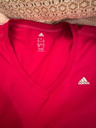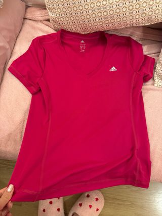 Camiseta deportiva de la marca Adidas en color rosa. - Diseño con cuello en V. - Tejido transpirable. - Logo de Adidas en el pecho. - Talla como M