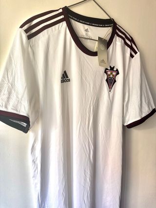 Camiseta oficial del Badajoz para la temporada 2024/2025. - Diseño blanco con detalles en negro. - Logo de Adidas y escudo del club. - Patrocinadores impresos en la parte frontal y mangas.