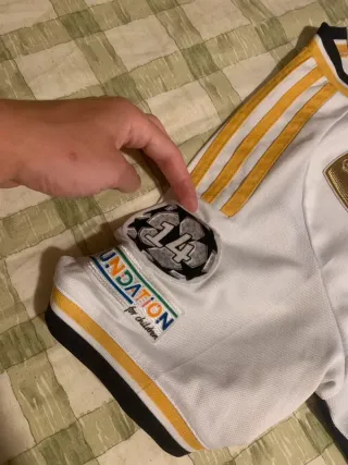 👕 Talla S 🏆 Temporada histórica 2023/2024 ⭐ Parche de la Champions (un poco despegado, se puede fijar fácil con pegamento) 🌍 Parche del Mundialito 🔠 Letras del patrocinador con ligero desgaste 🔢 Dorsal borrado