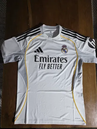Camiseta de fútbol del Real Madrid "Aeroready" para la temporada 2025-2026. - Un solo uso, el día del regalo. - Talla L. Marca Adidas. - Precio nueva 100€ - Grabada con el número 10 de MBAPPÉ.