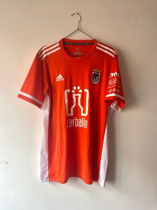 Camiseta oficial de Adidas de la temporada 2024/2025 del equipo Badajoz. Diseño moderno y cómodo. - Color principal naranja con detalles blancos. - Logo de Adidas en blanco en el pecho. - Escudo del equipo en el pecho. - Inscripción carballo en el frontal.