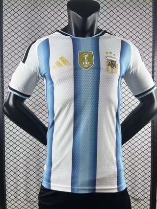Camiseta de argentina fútbol. - Diseño con franjas verticales celestes y blancas. - Detalles dorados de Adidas y escudo de la AFA. - Logo de FIFA World Cup 2022. CONSULTAR TALLAS DISPONIBLES!