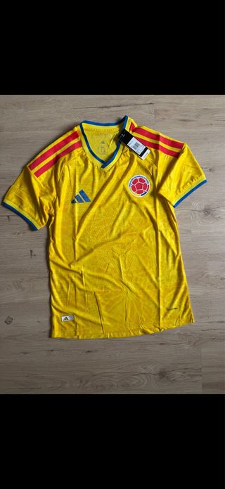 Camiseta de la Selección Colombia, edición Adidas. - Diseño con los colores representativos del equipo. - Detalles de las tres franjas de Adidas en las mangas. - Escudo de la selección en el pecho.