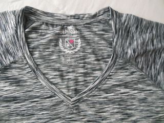 Preciosa camiseta deportiva de la marca athletic collection, talla M. Es de color gris y tiene un diseño elegante y moderno. Largo 65, ancho 45, cintura 44 - Diseño de cuello en V. - Tejido suave y cómodo. - Perfecta para hacer ejercicio o para el día a día.