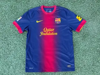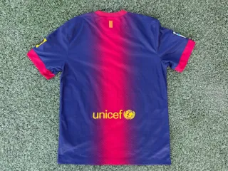 Camiseta retro oficial FC Barcelona temporada 2012/13. Camiseta de la famosa liga de los 100 puntos que consiguió el Barça con Tito Vilanova de entrenador. La camiseta es de talla M y está en perfectas condiciones. Sí eres culé y tienes niños pequeños o te encanta coleccionar camisetas retro, es más que un buen regalo.