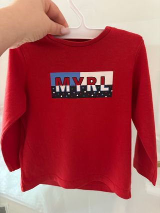 Camiseta Mayoral para bebé 18 meses (86 cm), de algodón suave y manga larga, perfecta como ropa infantil de diario y guardería. Color rojo con estampado moderno, fácil de combinar con cualquier look de niño. Prenda de segunda mano en muy buen estado, sin manchas ni roturas, ideal para quienes buscan ropa bebé cómoda, práctica y de calidad. Es un básico de moda infantil que sirve para otoño y primavera, resistente a lavados y con buen acabado. Combina genial con vaqueros y deportivas para un estilo casual, o con pantalón negro o beige para un conjunto más arreglado.