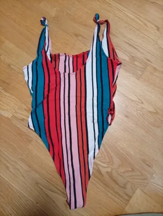 Body con un diseño de rayas multicolor. Es una prenda cómoda y llamativa. - Cierre de broches en la parte inferior. - Tirantes.