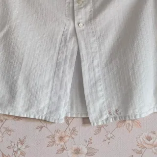 Bonita blusa o funda de corsé, chaleco antiguo en algodón blanco ligeramente texturizado, suave y muy ligera. Sin mangas, con escote redondo y apertura frontal hasta media cintura con tres botones originales de nácar. Conserva el monograma “E.P.” bordado en rojo en el bajo izquierdo, un detalle lleno de historia. En muy buen estado, recién lavada. Talla pequeña (ver medidas): hombros 41 cm, busto 52 cm, largo 50 cm, sisa 23 cm. Blusa antigua, cubrecorse antiguo, blusa victoriana, enagua antigua, bombachos antiguos, vestido bebe ceremonia antiguo, mantel antiguo, da Ana's antiguas, mantilla Anti guy, Velo Antiguo, encaje antiguo,