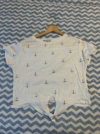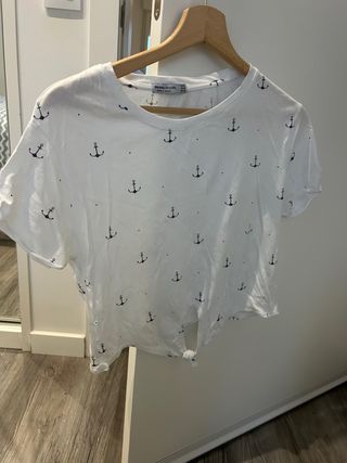 Camiseta Bershka blanca con anclas Talla XS