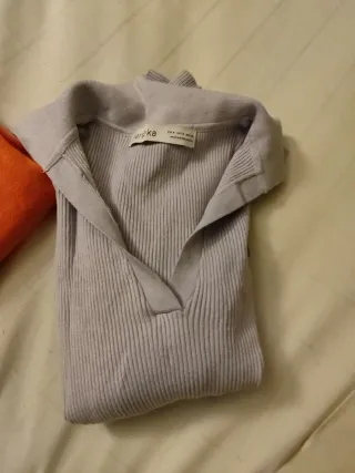 jersey/camiseta corto de punto lila de la marca Bershka con textura acanalada talla L en perfecto estado