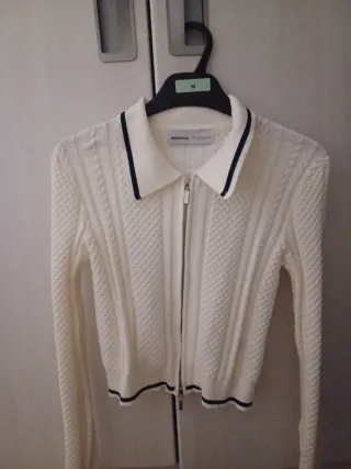 Top Bershka blanco cremallera doble M