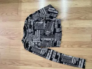 Camiseta de manga larga con un llamativo estampado inspirado en periódicos. El diseño combina texto y titulares en blanco y negro. - Manga larga. - Cuello redondo. - Tejido elástico.