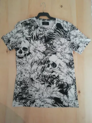 Camiseta Bershka calaveras y flores