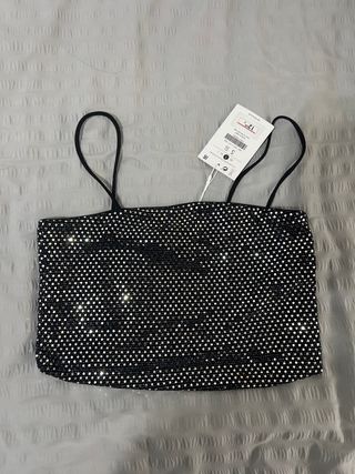 Camiseta Top Bershka lunares plateados Talla M