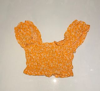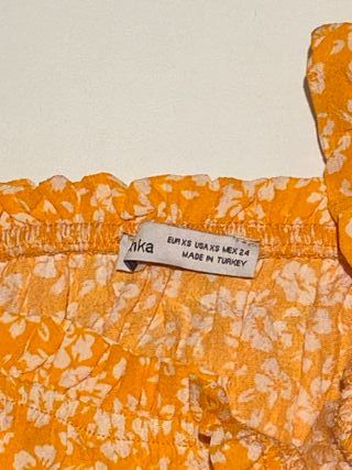 Top Bershka naranja print flores blancas Talla XS