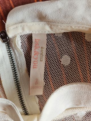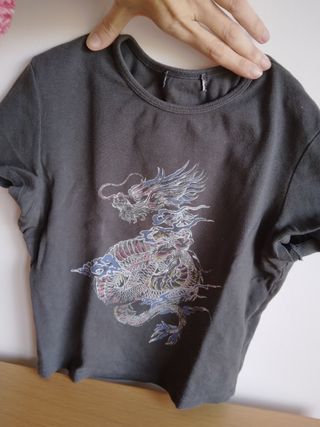 1.-Top Bershka, estampado la parte delantera y liso transparente la trasera, manga trasera y cierra con cremallera Largo 60-65 cm Sisa 48 cm Bajo 50 cm Talla M