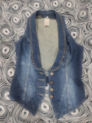 Chaleco abotonado denim con tachuelas de Bershka. Talla M.