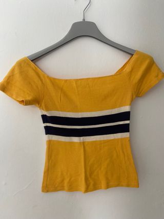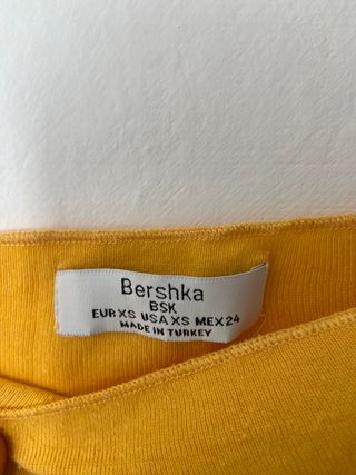 Top de Bershka en color amarillo, con diseño cruzado y tirantes. - Tejido de punto acanalado. - Detalle de costuras en los copas. - Lazos para atar.