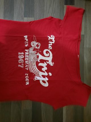 Preciosa camiseta de color rosa, con un diseño estampado muy original. Es de manga corta y tiene un corte clásico. Está en buen estado, lista para usar. - Estampado con ilustraciones - Dos pines de calaveras incluidos