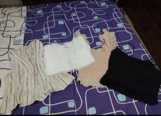 Lote de ropa, 14 prendas. Para chica las tallas son xs-s y 36 pero todo lo usaba mi hija. -vestido beige de fórmula joven. -mono de vestir lila talla única. -chaleco pluma de bershka morado. -pantalón rosa claro con varios bolsillos a los lados. -2 Mallas de deporte talla s marca workout. -unas cuantas de camisetas variadas -Un pero vaquero ....