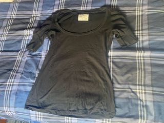 Camiseta negra con un diseño que realza la figura. - Escote pronunciado. - Mangas cortas con detalle. - Pequeño logo en la parte inferior. -talla s/m -apenas se ha usado, esta prácticamente nueva