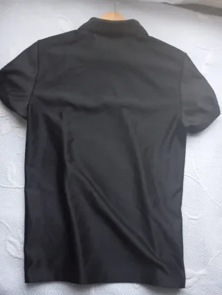 Camiseta corta negra con detalles dorados. Ideal para ponerte con un top deportivo debajo. Aunque sea talla XS es bastante anchita y finita. No realizo entregas en mano. Envíos únicamente por correo PRECIO NEGOCIABLE
