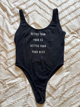 Body negro de Bershka con un mensaje divertido. - Diseño con tirantes. - Corte de tanga. - Estampado blanco 'Better Than Your Ex, Better Than Your Next'.