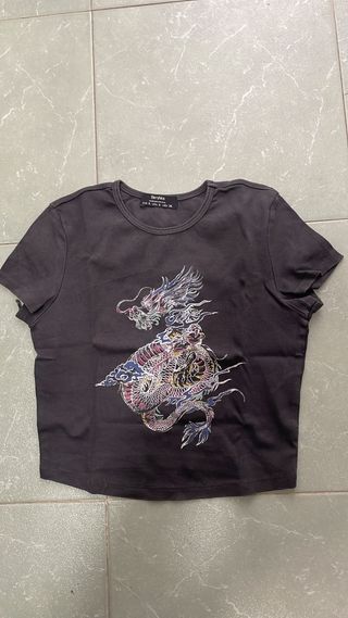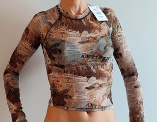 Camiseta crop trasparente con estampado de fuego. Talla S. Marca Bershka. Un solo uso.