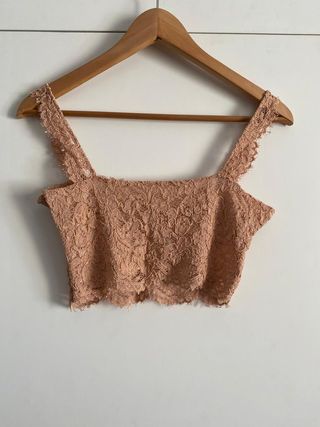 Top de encaje negro de Bershka. - Diseño de lencería. - Tejido de encaje floral. - Tirantes finos.
