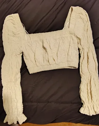 Top de Bershka de diseño romántico. Completamente nuevo. - Tejido texturizado. - Escote cuadrado. - Mangas largas abullonadas. - Puños y bajo elásticos.