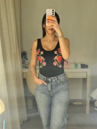 Body estampado de flores con los hombros descubiertos. Talla xs bershka